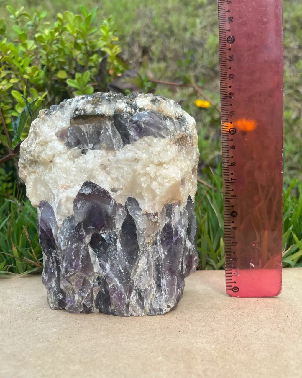 Ela nos protege contra ataques psíquicos, transmutando energias indesejáveis em pura luz. Calmamente natural a ametista bloqueia o estresse geopático e as energias negativas do ambiente. A sua serenidade favorece a meditação e os seus estados de consciência mais elevados.