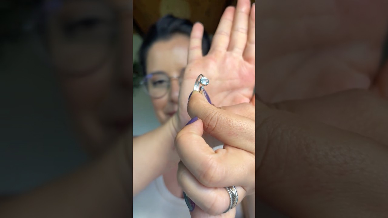 A pedra possui brilho azul suave e lapidação que valoriza a luz, trazendo delicadeza e elegância ao visual.