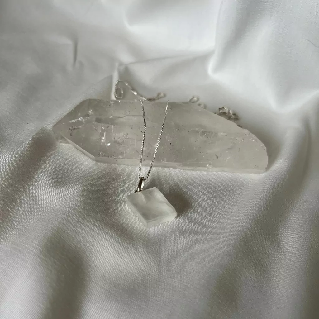 Pingente de cristal calcita ótica com terminação em prata 950 ( este é um produto artesanal), lindo, imponente e ao mesmo tempo delicado.